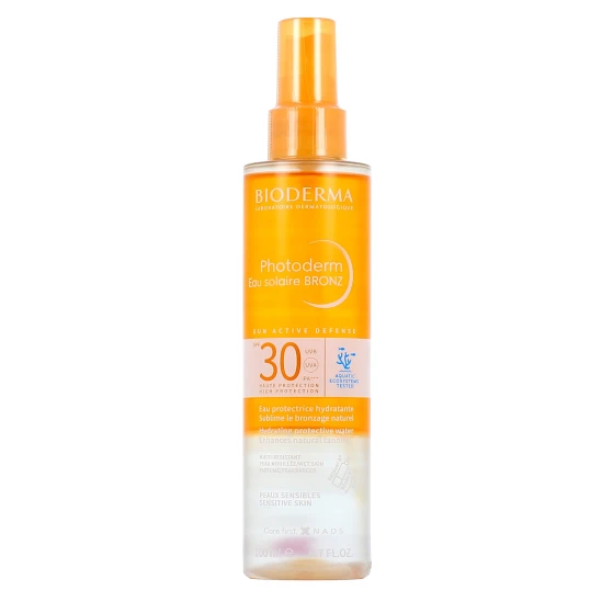 Avec son SPF 30, l’eau solaire Photoderm Bronz de Bioderma est particulièrement adaptée aux personnes ayant une peau mate à foncée. Les peaux claires pourront également l’utiliser, plutôt en relais d’un indice de protection plus élevé, notamment à la fin de l’été. Cette eau solaire permet de préserver la peau des dommages causés par les UV (coups de soleil, brûlures, lésions cellulaires, photovieillissement). Elle vient également hydrater la peau, intensifier et prolonger le bronzage naturel.
