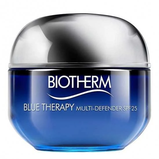 La plupart des signes visibles de vieillissement sont dus à l’exposition extérieure. Aujourd’hui, les crèmes de protection quotidiennes ne protègent que contre 25 % de ces signes. Biotherm a donc créé un soin à l’alliance unique : une protection sans précédent alliée à une réparation des signes visibles de l’âge, vous offrant ainsi le bouclier le plus complet contre tous les facteurs d’accélération du vieillissement. La première crème anti-âge qui protège des uvb, des uva longs et de la pollution : blue therapy multi-defender spf 25. Une nouvelle génération de soin anti-âge activée par le premier broad outdoor defense complex™, concentré en baïcaline antioxydante et en f. Lumbricalis qui protège de la pollution, afin de défendre votre peau contre les facteurs d’accélération du vieillissement comme jamais auparavant. Lorsque la peau est mieux protégée, elle est capable de s’auto-réparer. Grâce aux pouvoirs régénérants de l’algue de jeunesse™, les signes de l’âge tels que les taches, les rides profondes et le manque de fermeté sont visiblement réparés.