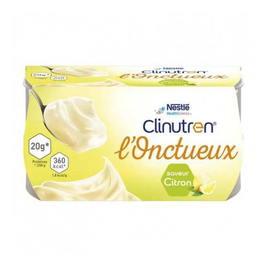 Denrée alimentaire destinée à des fins médicales spéciales. Aliment hyperprotéiné et hypercalorique. Sans gluten. Clinutren® L’onctueux est un complément nutritionnel oral, un produit concentré en protéines et énergie. Il est conçu pour prendre en charge la perte de poids en cas d’apports alimentaires insuffisants. Conditionnement : 4 cups de 200 g.