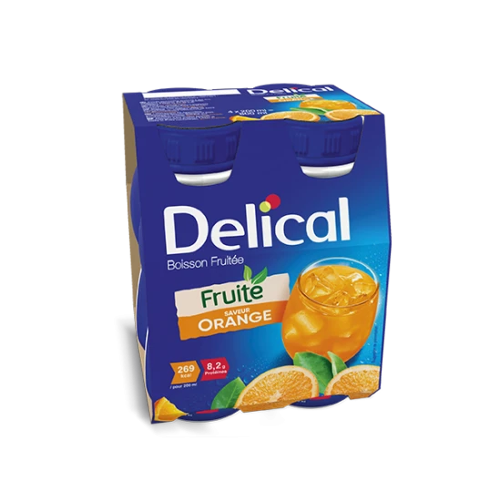 La Boisson Fruitée DELICAL est une boisson à base de jus de fruit concentré, riche en vitamines et minéraux. Elle est préconisée dans les situations de dénutrition, d’inappétence ou de besoins accrus en calories. La Boisson Fruitée DELICAL convient également en cas d’intolérance au lactose, de diarrhée ou de transit sensible, ainsi qu?en cas de déglutition douloureuse.