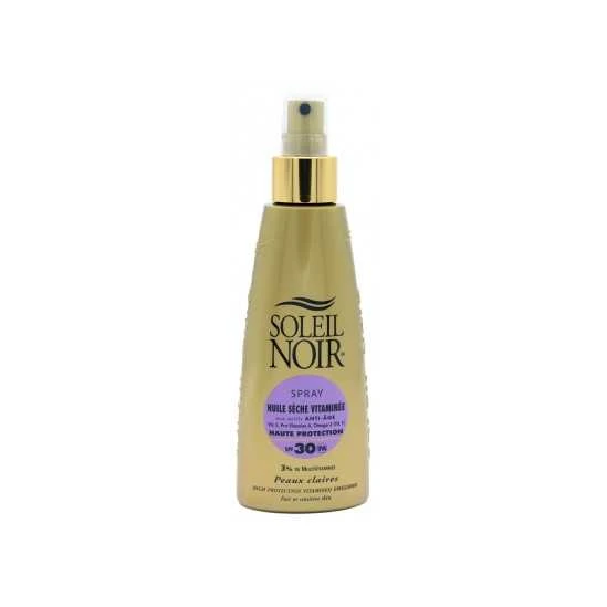 Soleil Noir Huile Sèche Vitaminée SPF30 Spray 150 ml est une huile sèche qui offre une haute protection solaire (SPF30). Elle est spécialement destinée aux peaux claires.